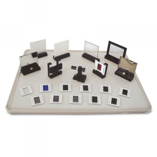 Als Lichtquelle dient ein teilweise polarisierter Diodenlaser mit justierbarem Halter. Stromversorgung erfolgt über ein Steckernetzgerät (im Lieferumfang enthalten) oder alternativ über Batterien. Die Komponenten sind magnethaftend und lassen sich auf der im Lieferumfang enthaltenen Metalltafel waagrecht oder senkrecht zu den verschiedenen Versuchsanordnungen zusammenstellen. Alle Teile sind in einem Aufbewahrungskoffer mit gerätegeformter Schaumstoffeinlage untergebracht.
