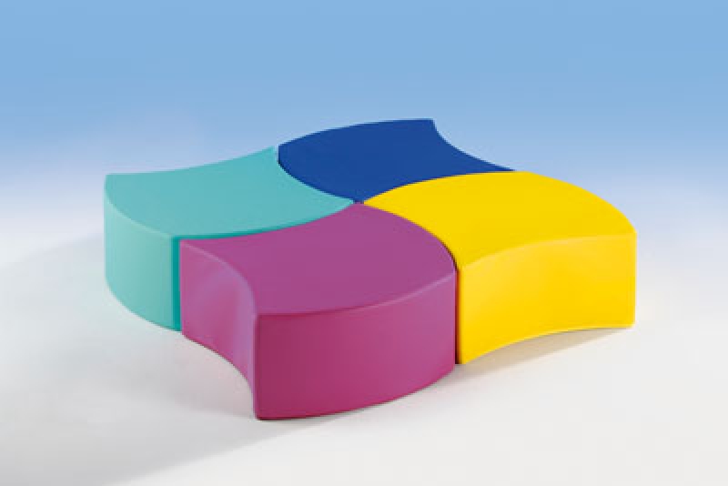 Wellenförmige Sitzelemente in 5 fröhlichen Farben.