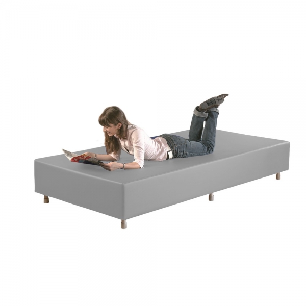 Basis ist eine 19mm starke Holzplatte. Fest verschraubte, 10cm hohe Stellfüße mit Bodenausgleichs-Schrauben (verstellbar ± 3cm) sorgen für optimalen Stand und gleichen Bodenunebenheiten aus. Auf der Basisplatte liegt der bequeme Schaumstoff auf.
