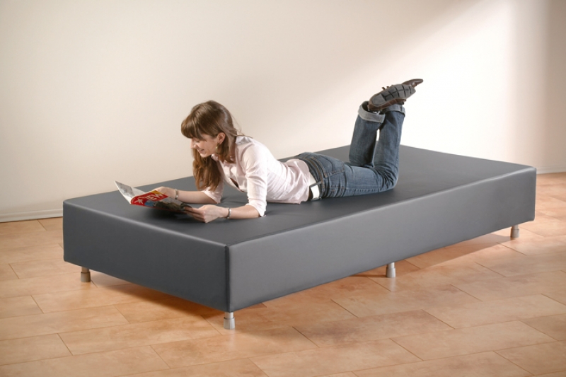 Basis ist eine 19mm starke Holzplatte. Fest verschraubte, 10cm hohe Stellfüße mit Bodenausgleichs-Schrauben (verstellbar ± 3cm) sorgen für optimalen Stand und gleichen Bodenunebenheiten aus. Auf der Basisplatte liegt der bequeme Schaumstoff auf.