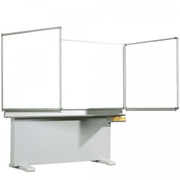 Unsere Whiteboard Klappschiebetafel aus Premium Stahlemaillel ist dank ihrer vier Rollen, davon zwei feststellbar, mobil einsetzbar. Diese Klappschiebetafel ist aber auch in einer feststehenden Variante erhältlich. Insgesamt fünf Tafelflächen bieten genug Platz für Ihren Tafelaufschrieb. Die Tafelfläche ist in verschiedenen Maßen bestellbar. Das Whiteboard ist höhenverstellbar in einem Höhenstellbereich von 160 bis 225 cm (Oberkante).