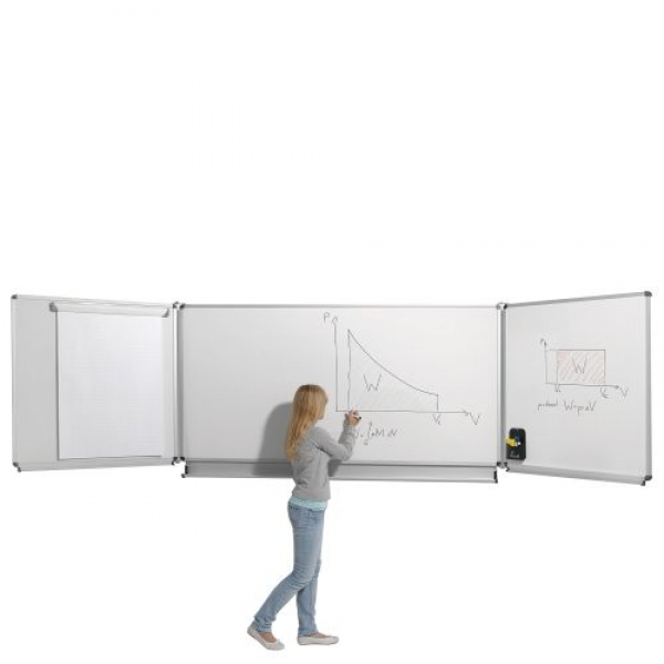 Die für die feste Wandmontage vorgesehene Klapptafel mit kunststoffbeschichteter Whiteboard Schreibfläche aus Stahlblech ist magnethaftend und für die Nutzung von trocken abwischbaren Whiteboardstiften optimiert.