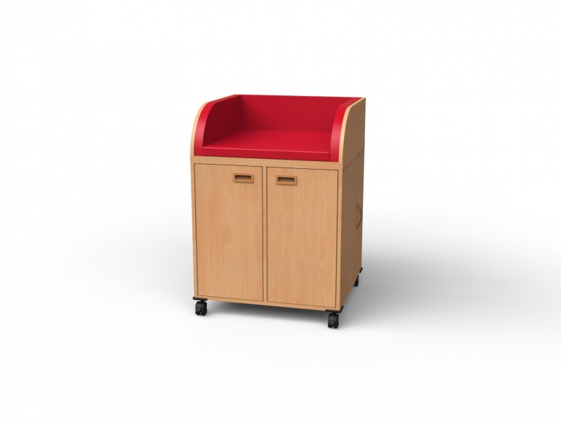 fahrbares Wickelcenter BxHxT 80,1 x 85 / 110 x 90 cm oben: 3-seitige Wickelumrandung vorne: 2 Türen, nicht abschließbar, Muschelgriffe, Mittelwand, 2 x 3 Fachböden seitlich: 1 Tür, Segmentbogengriff ( RM 128 mm ) verchromt matt 4 Rollen, 2 davon feststellbar Die Wickelauflage gehört nicht zum Lieferumfang, bitte als separaten Artikel in die Bestellung / Angebotsanforderung aufnehmen. Passende Wickelauflagen finden Sie unten unter der Artikelbeschreibung (bitte nach unten scrollen)!