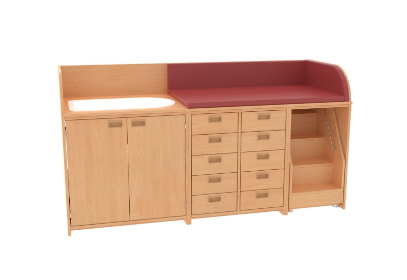 Wickelkommode XXL BxHxT 210 x 85 / 110 x 75 cm oben: -seitige Aufkantung für Wickelauflage links: