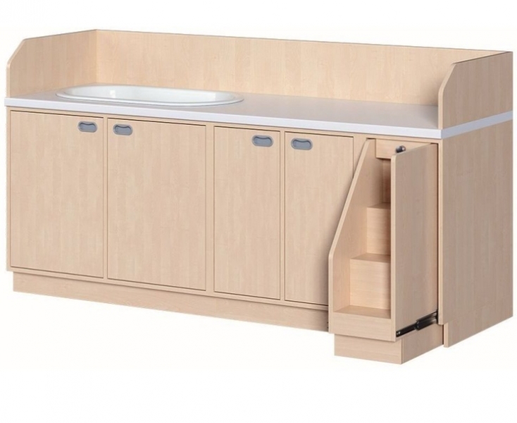 Wickelkommode XXL 4-türig, mit Badebecken und Treppe links