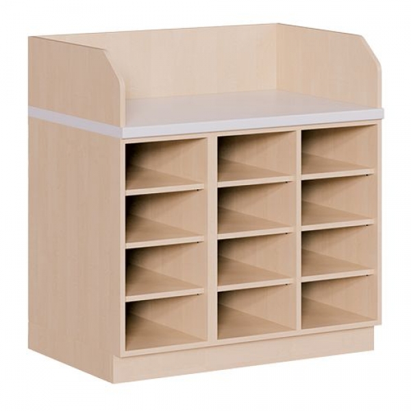 Ob als einzeln aufgestellter Wickelschrank oder als große Wickelkombination - in jedem Fall bieten die verschiedenen Elemente der Wickelkommoden langlebige Materialien, geprüfte Sicherheit, ergonomische Maße und zudem viel Stauraum. Dreiseitige Sicherheits-Aufkantungen umranden die Arbeitsplatte, welche wasserfest beschichtet und vorn benutzerfreundlich gerundet ist. Eingelassene Griffe und der zurückgesetzte Sockel gestatten ein nahes Herantreten an den Wickelplatz. Als Ausstattungen sind verschiedene Varianten rückenschonender Aufstiegshilfen, Schübe, sowie Kinderbadewannen und Handwaschbecken erhältlich. Optional ist eine besonders wasserfeste Sockelvariante lieferbar. Es kann zwischen zwei verschiedenen Arbeitstiefen und Rechts/Links-Varianten der Schränke gewählt werden. Die Wickelauflage ist separat zu bestellen.
