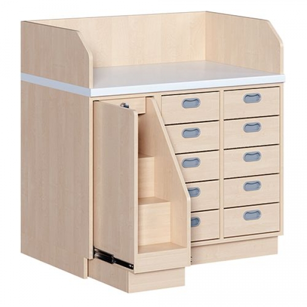 Wickelkommode mit ausfahrbarer Treppe und 10 Schubladen