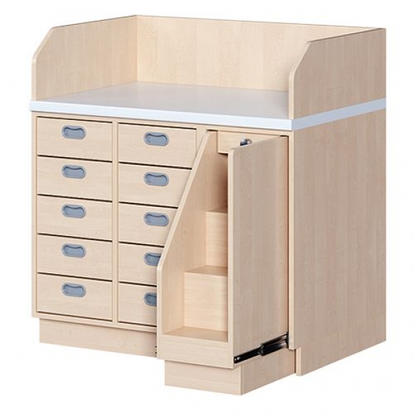Wickelkommode mit ausfahrbarer Treppe und 10 Schubladen