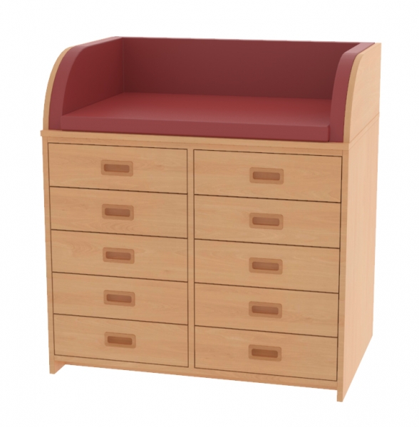 Wickelkommode BxHxT 102 x 85 / 110 x 70 cm oben: 3-seitige Wickelumrandung unten: 2 x 5 Schubkästen mit Muschelgriffen und SoftClose Auszügen Die Wickelauflage gehört nicht zum Lieferumfang, bitte als separaten Artikel in die Bestellung / Angebotsanforderung aufnehmen. Passende Wickelauflagen finden Sie unten unter der Artikelbeschreibung (bitte nach unten scrollen)!