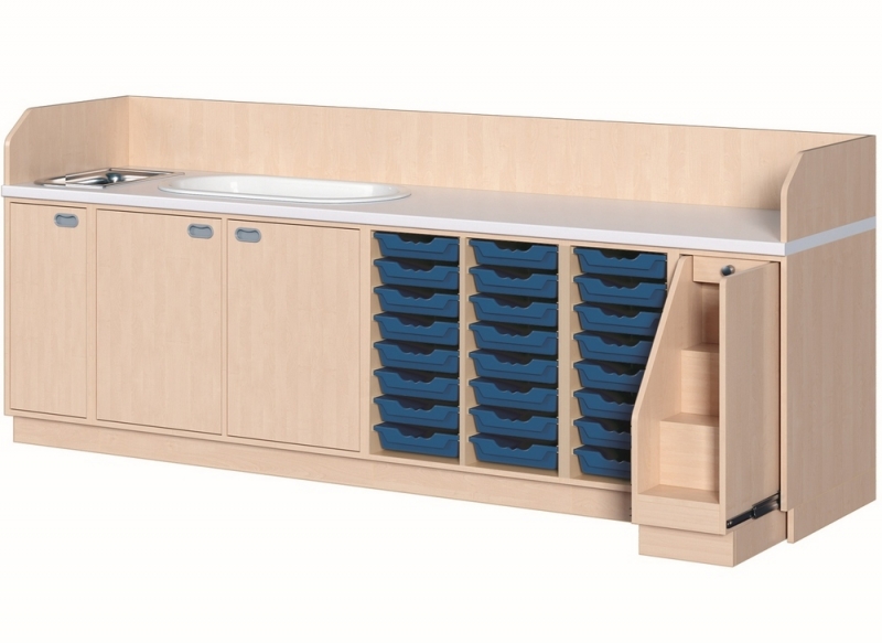 Wickelkommode mit Treppe, Badewanne und Waschbecken 285x113x91,5 cm