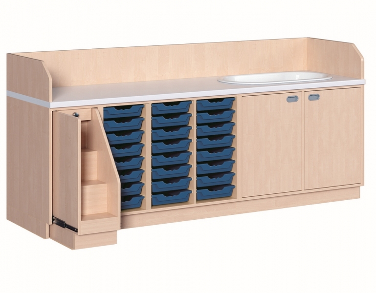 Wickelkommode mit Treppe, Wanne und 24 Boxen 249x113x71,5 cm