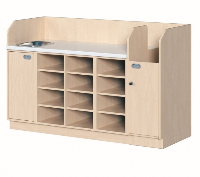 Ob als einzeln aufgestellter Wickelschrank oder als große Wickelkombination - in jedem Fall bieten die verschiedenen Elemente der Wickelkommoden langlebige Materialien, geprüfte Sicherheit, ergonomische Maße und zudem viel Stauraum. Dreiseitige Sicherheits-Aufkantungen umranden die Arbeitsplatte, welche wasserfest beschichtet und vorn benutzerfreundlich gerundet ist. Eingelassene Griffe und der zurückgesetzte Sockel gestatten ein nahes Herantreten an den Wickelplatz. Als Ausstattungen sind verschiedene Varianten rückenschonender Aufstiegshilfen, Schübe, sowie Kinderbadewannen und Handwaschbecken erhältlich. Optional ist eine besonders wasserfeste Sockelvariante lieferbar. Es kann zwischen zwei verschiedenen Arbeitstiefen und Rechts/Links-Varianten der Schränke gewählt werden. Die Wickelauflage ist separat zu bestellen.