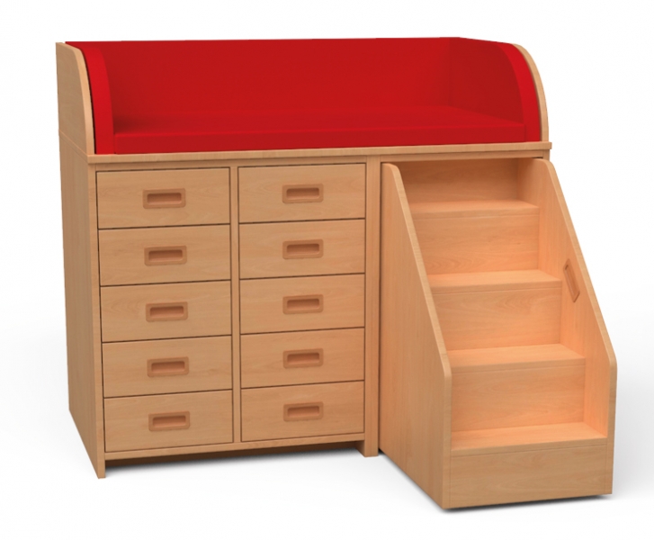 Wickelkommode BxHxT 125 x 85 / 110 x 70 cm oben: 3-seitige Wickelumrandung unten links: 2 x 5 Schubkästen mit Muschelgriffen und SoftClose Auszügen unten rechts: ausfahrbare Treppe mit Feststellstopp Die Wickelauflage gehört nicht zum Lieferumfang, bitte als separaten Artikel in die Bestellung / Angebotsanforderung aufnehmen. Passende Wickelauflagen finden Sie unten unter der Artikelbeschreibung (bitte nach unten scrollen)!