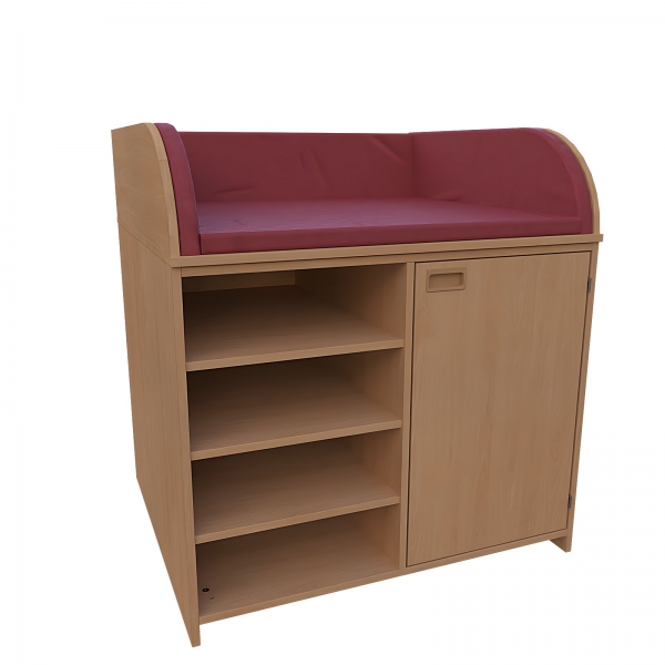 Wickelkommode, BxHxT 102 x 85 / 110 x 90 cm Korpus: 75 cm + Seitenteileoben: 3-seitige Aufkantung für Wickelauflage- Kunstleder Wickelauflage nicht im Lieferumfang enthaltenMittelwandrechts: 1 Tür, Muschelgriff, 3 verstellbare Einlegebödenlinks: offen, 3 verstellbare Einlegeböden