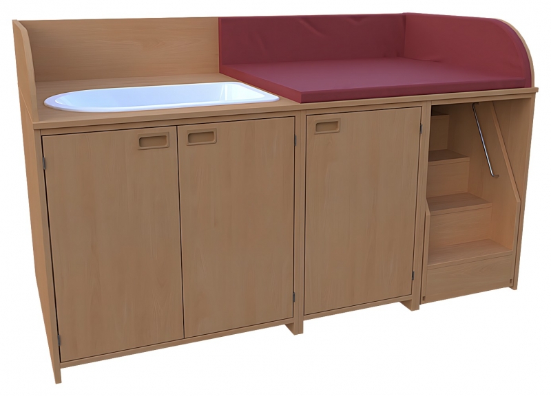 Wickelkommode, BxHxT 185 x 85 / 110 x 90 cmKorpus: 75 cm tief + Seitenteileoben: 3-seitige Aufkantung für Wickelauflage- Kunstleder Wickelauflage nicht im Lieferumfang enthaltenlinks: 1 VARICOR Badebecken, 2 Türen, Muschelgriffe, 1 Einlegebodenmitte: 1 Tür, Muschelgriff, 3 verstellbare Einlegebödenrechts: 1 ausfahrbare Treppe mit Feststellstop
