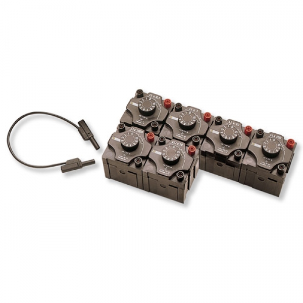 Widerstandsdekaden, die mechanisch mit einander verbunden werden können z.B. zum Aufbau einer Wheatstone Brücke.