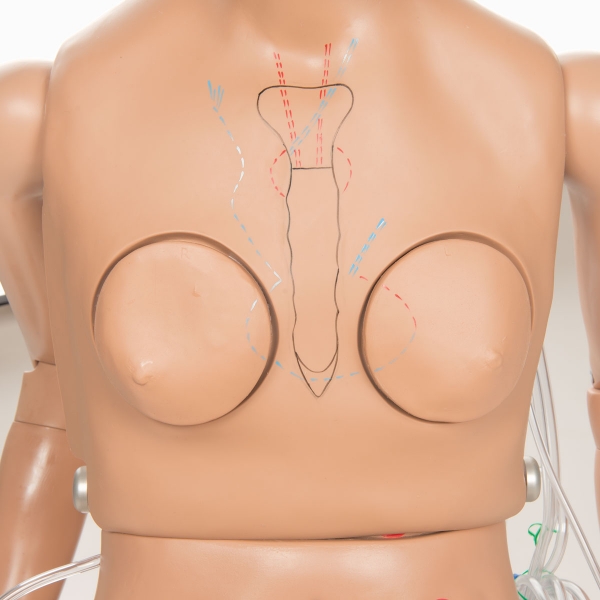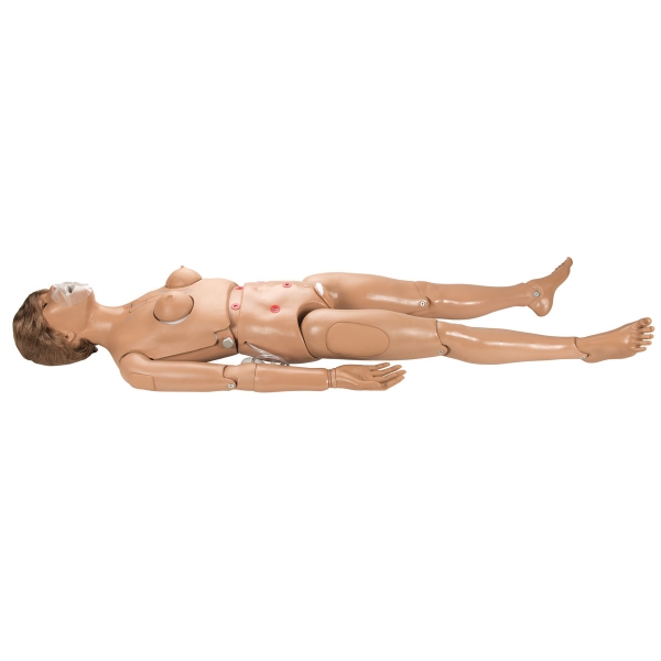 Diese originalgroße Nachbildung eines Erwachsenen bietet die perfekte Übungsgrundlage für Wiederbelebungsmaßnahmen und zahlreiche Patientenpflegeübungen, wie zum Beispiel intramuskuläre und subkutane Injektionen,  Katheterisierung bei Mann und Frau, Intubation, Verabreichung von Einläufen, Dekubitus-Versorgung und Abtasten der rechten und linken Halsschlagader.