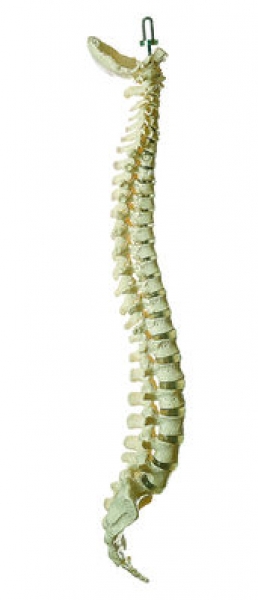 Naturabguß, aus SOMSO-Plast®. Bestehend aus Hinterhauptsbein, den Hals-, Brust- und Lendenwirbeln mit Kreuz- und Steißbein. Starr montiert.