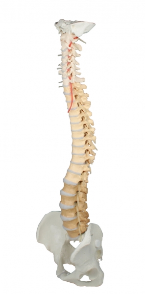 Wirbelsäule mit abnehmbarem Becken, Wirbel didaktisch gefärbt