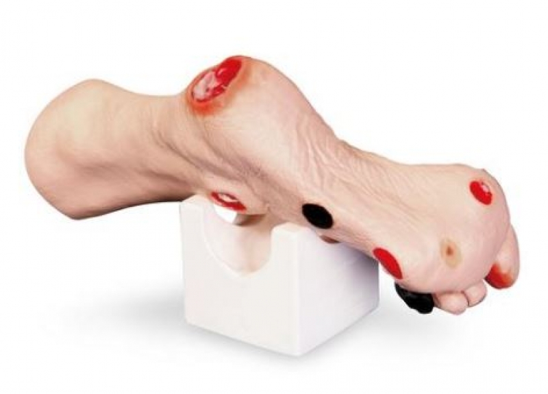 Dieses Fußmodell einer 80-jährigen Patientin ist das neueste und umfassendste Modell seiner Art zur realistischen Prüfung unterschiedlicher Wundarten.