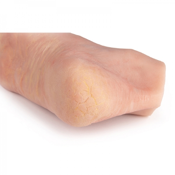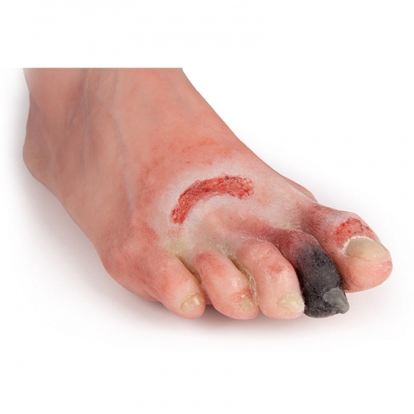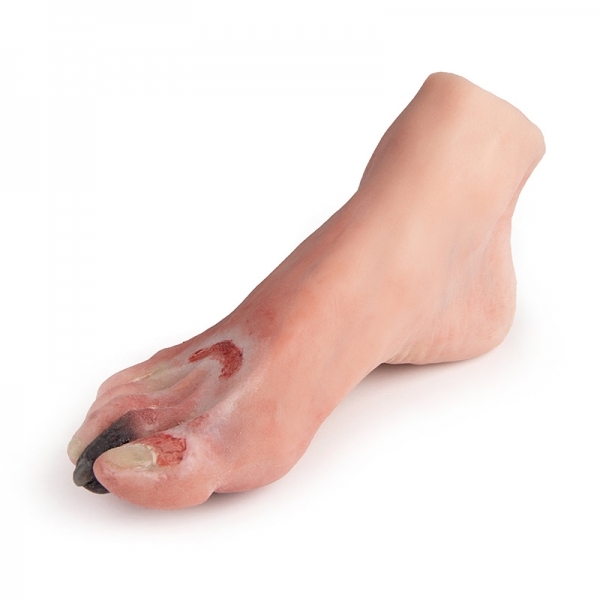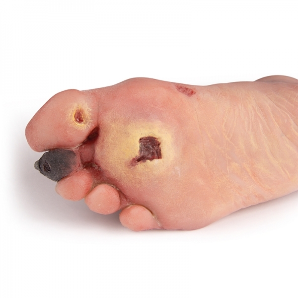 Dieses lebensechte lebensgroße Fußmodell zeigt typische Symptome des diabetischen Fußsyndroms.