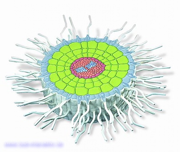 Am Beispiel des weißen Senf (Sinapis alba) veranschaulicht dieses Reliefmodell die vergrößerte Absorptionszone einer zweikeimblättrigen Pflanze.