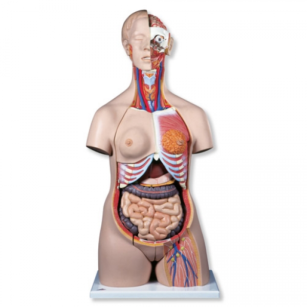 Der 3B Scientific Luxus-Torso bietet Ihnen alle Möglichkeiten für ausführliche Demonstrationen. Sie erhalten hunterprozentige Qualität und einen hohen Grad an Detailarbeit. Die Beschaffenheit der erweiterten Torso-Version ist beeindruckend, genau wie sein Preis! Beantworten Sie mit seiner Hilfe alle Fragen zur inneren Anatomie des Menschen. Er ist zerlegbar in: