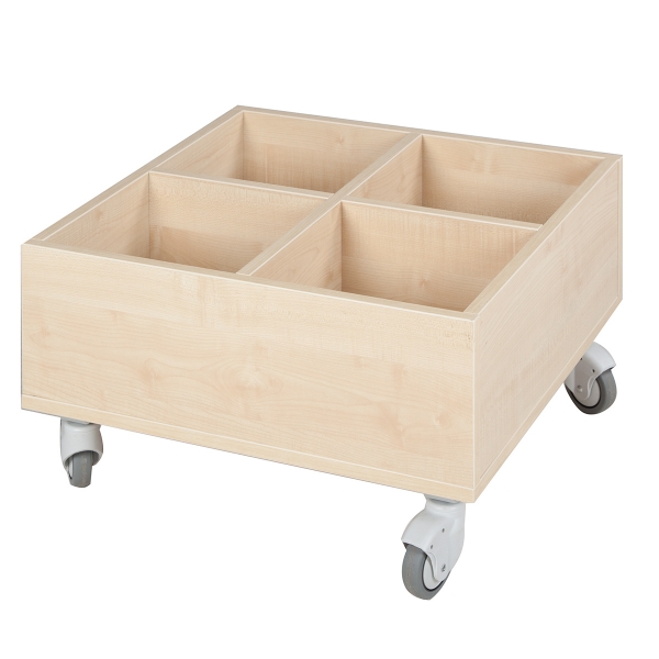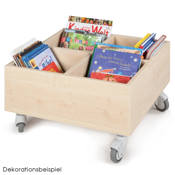 Sie verfügt über genügend Stauraum und ist fahrbahr. Die glatten Seitenwände eignen sich perfekt zum Kombinieren mehrer Bücherkisten.