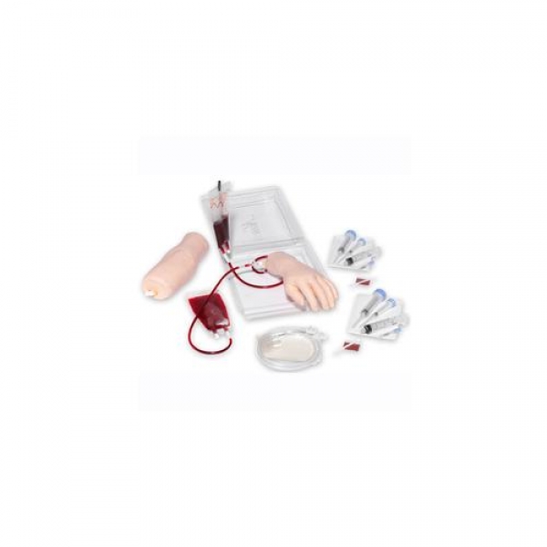 Im Lieferumfang der Trainer befinden sich zwei i.v.-Beutel, ein Paket mit Blutpulver und Löffel, ein Kunststoffständer für die Flüssigkeitszufuhr, zwei Schlauchklemmen, eine 3-ml-Spritze, eine 12-ml-Spritze, eine 12-Gauge-Nadel, ein Flügelinfusionsset und ein Tragekoffer aus Kunststoff.