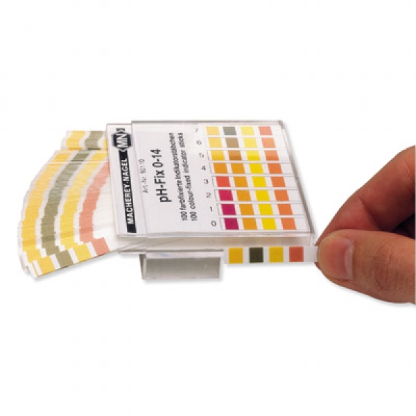 Für die schnelle ph-Wert Bestimmung. Die auf den Plastikstäbchen aufgebrachten Indikatorflächen werden nicht ausgelaugt (nicht blutend).